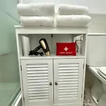 Lägenheten har uteplats med luftkonditionering som garanterar en bekväm vistelse. Boendet erbjuder en separat toalett, en dusch och en tvättmaskin för ökad komfort. Dessutom finns det hårtorkar, badlakan och handdukar.